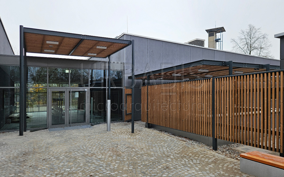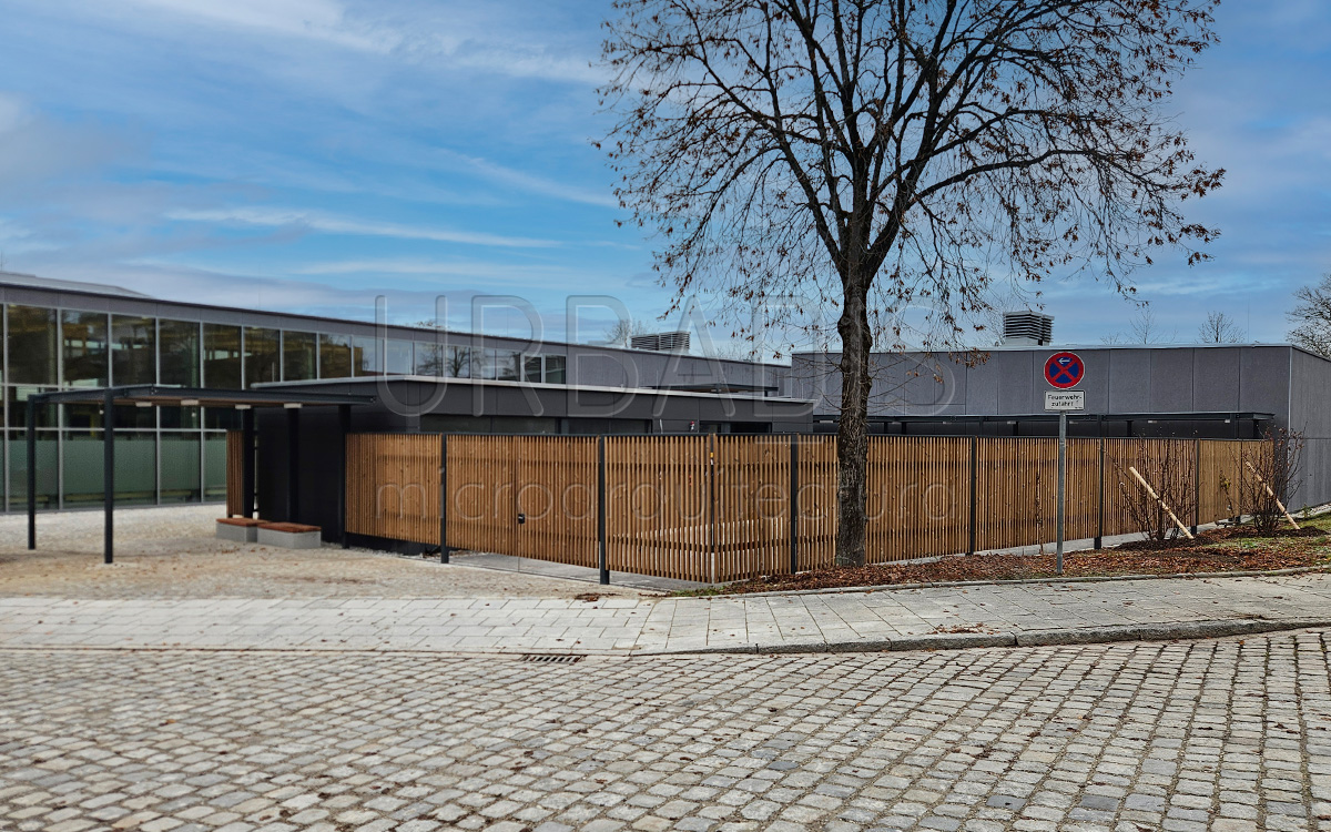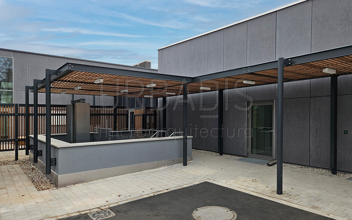 En el marco de la ampliación de los edificios del colegio Anni-Pickert-Grund- und Mittelschule de Poing, de proyectaron pérgolas para los alrededores e interior del colegio. Para dar solución a este proyecto, se optó por un sistema de pérgolas Habana con un emparrillado de madera termotratada y cobertura con policarbonato compacto para proteger de la lluvia.