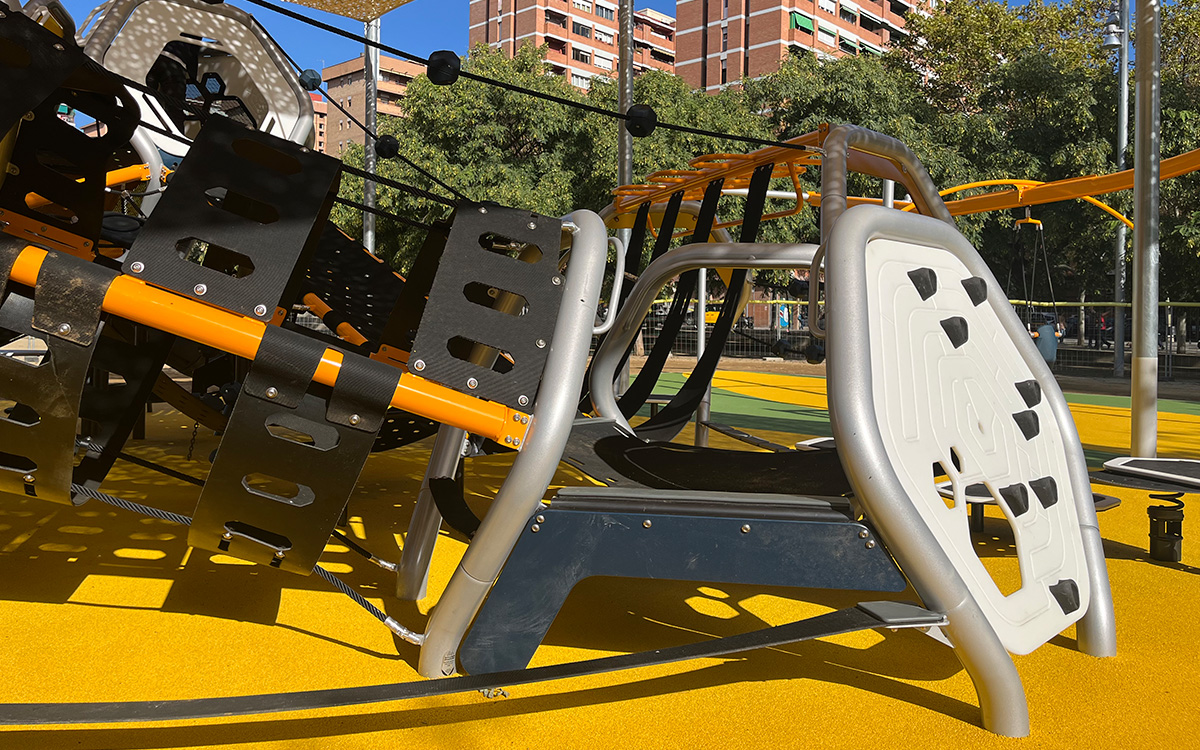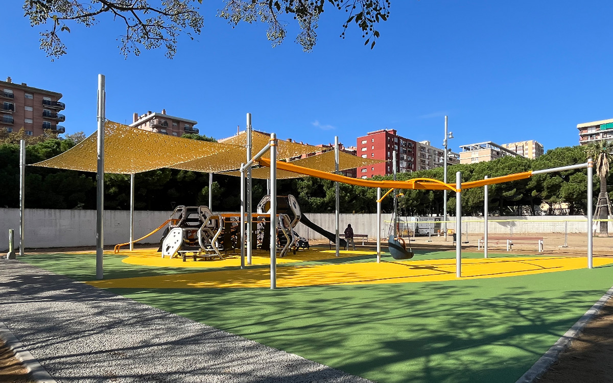 Juegos infantiles inclusivos en la Plaça de la Palmera de Sant Martí en Barcelona