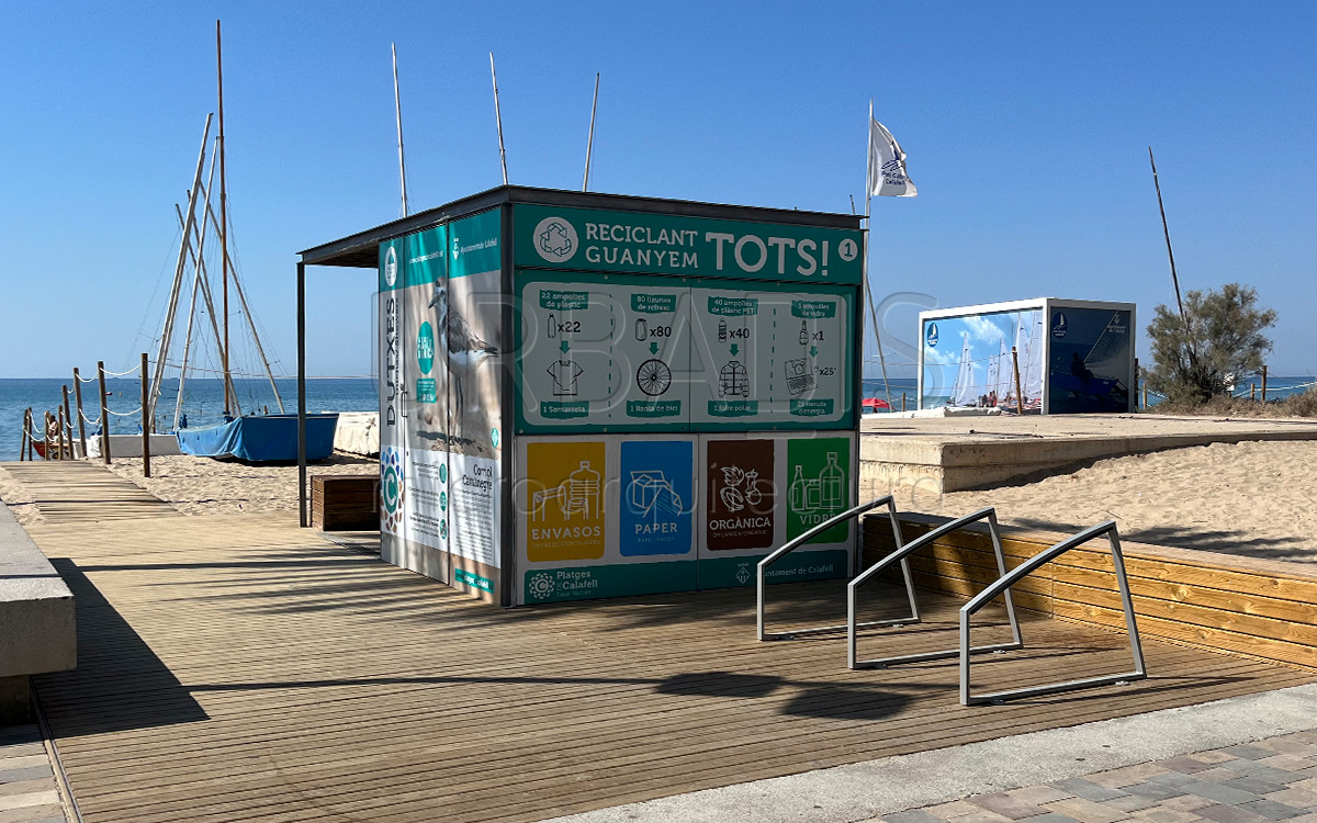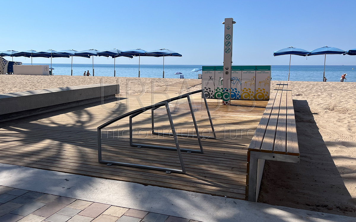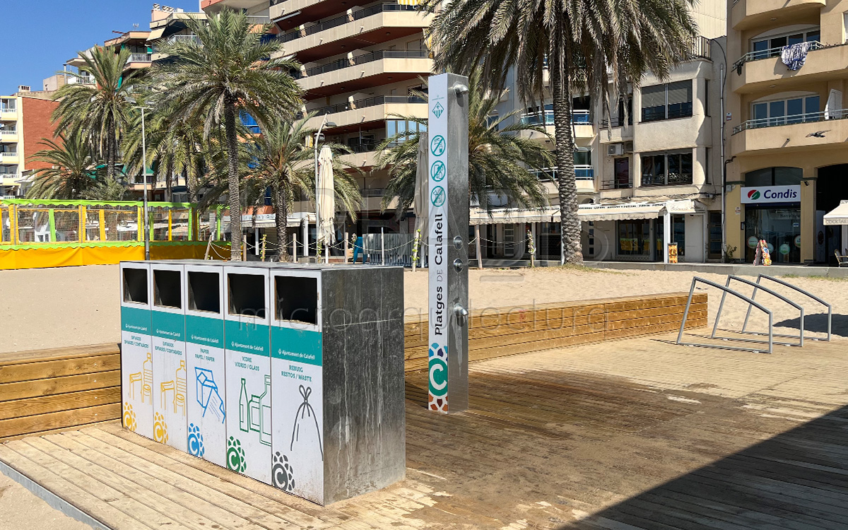 En esta ocasión el Ajuntament de Calafell decidió ampliar sus zonas de servicios para bañistas con nuevas columnas de ducha, lavapiés, bancos, papeleras de recolección selectiva y aparcabicicletas para los usuarios de las playas. Estas plataformas multiservicios de nuestra serie ADA se adaptan a la casuística y necesidades de cada emplazamiento.
