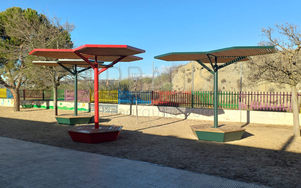 Hoy en día, la creación de espacios de sombra es indispensable para mejorar la calidad de los parios de las escuelas de todo el país. El principio del curso lectivo y su final, se ven marcados por la gran incidencia solar del verano. Por ese motivo, el Ayuntamiento de Rivas Vaciamadrid impulsó una mejora de sus patios, creando refugios climáticos para sus alumnos, no sólo creando espacios de sombra sino que también crean espacios de sociabilización e intercambio.