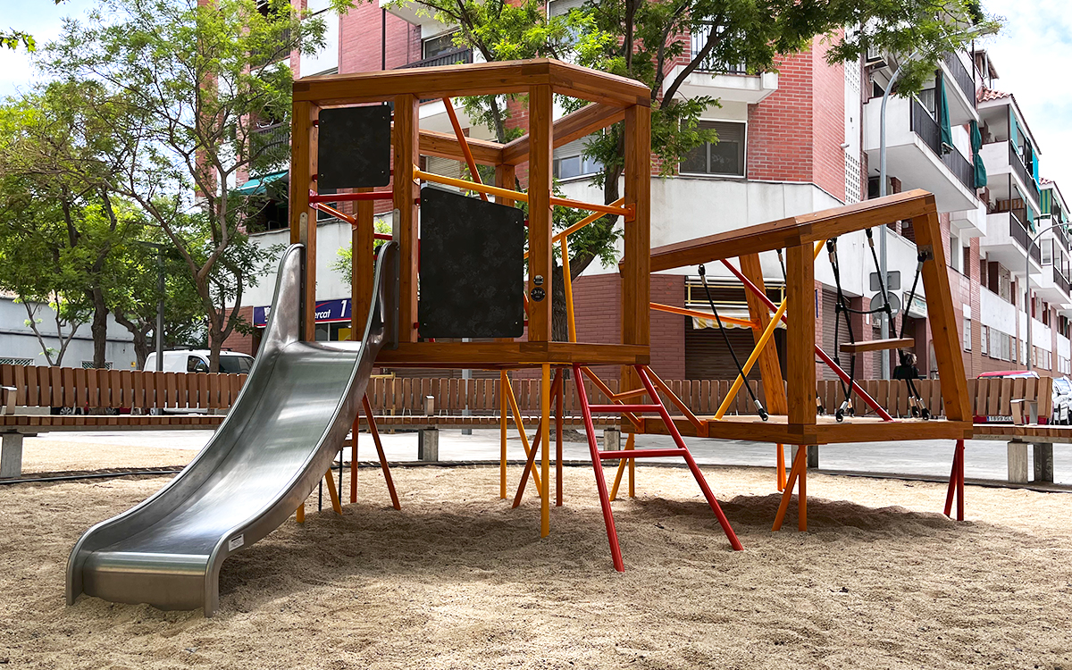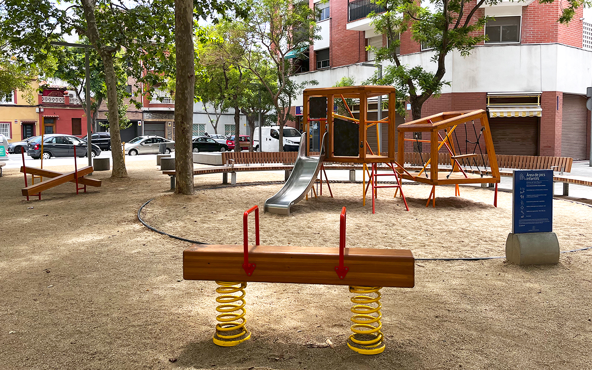 En el marco del proceso participativo de reforma de la Plaça Estany de Sant Maurici, en el municipio de El Prat de Llobregat, los juegos de la serie Dikulo fueron seleccionados para crear el nuevo espacio de juegos infantiles. Díkulo es una serie de juegos de robinia de la firma Hriste, procedente de República Checa, combina la textura de la madera natural con el acero que le aporta diversión y color al área.