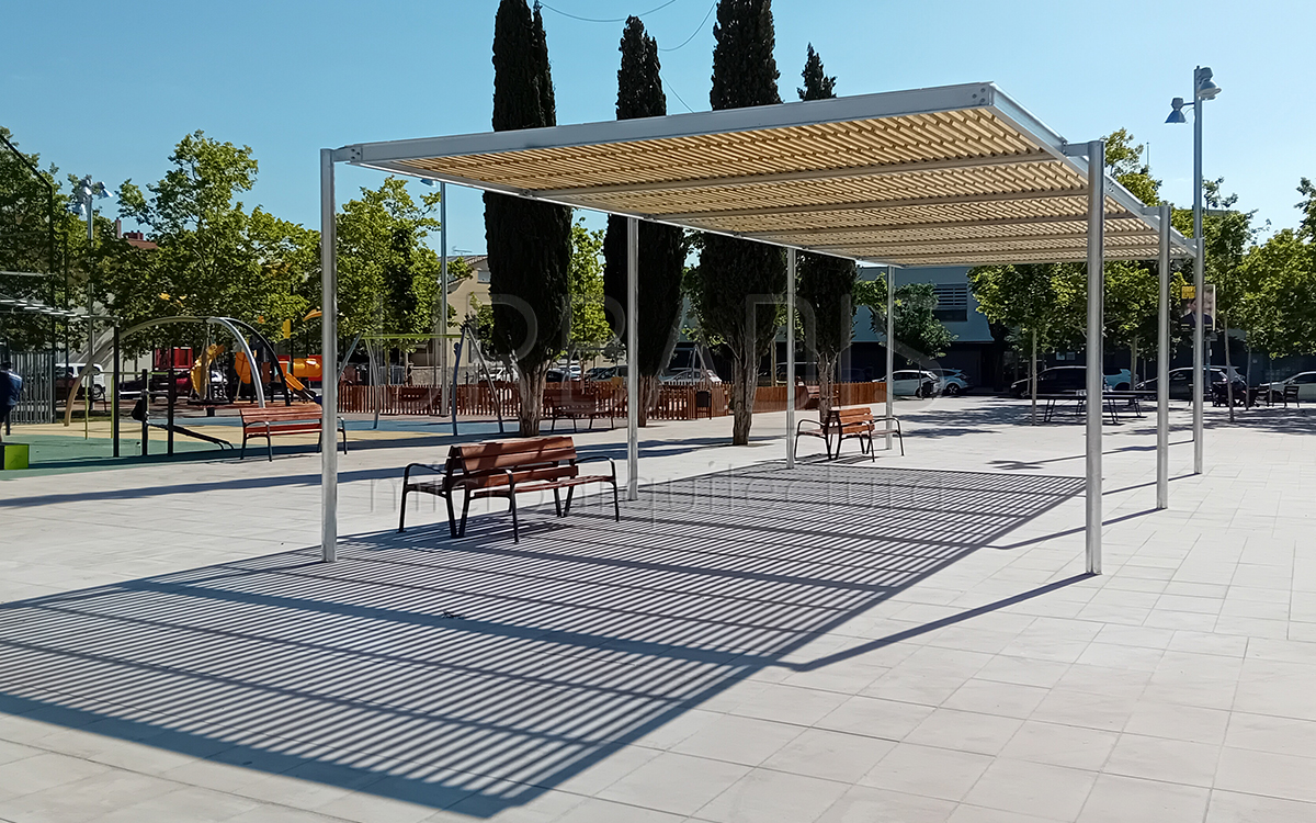 Para este proyecto, se crearon parques infantiles, espacios deportivos de diferentes tipos, se actualizaron los caminos para los peatones y se plantaron árboles para crear nuevos espacios de sombra. Después de toda esta gran transformación, el Ayuntamiento vio la necesidad de crear un nuevo espacio de sombra en una zona donde no es posible la plantación de árboles. Por ese motivo, la pérgola Habana fue la solución ideal para esta problemática, donde ofrecemos la creación de un refugio climático extra en la ciudad.